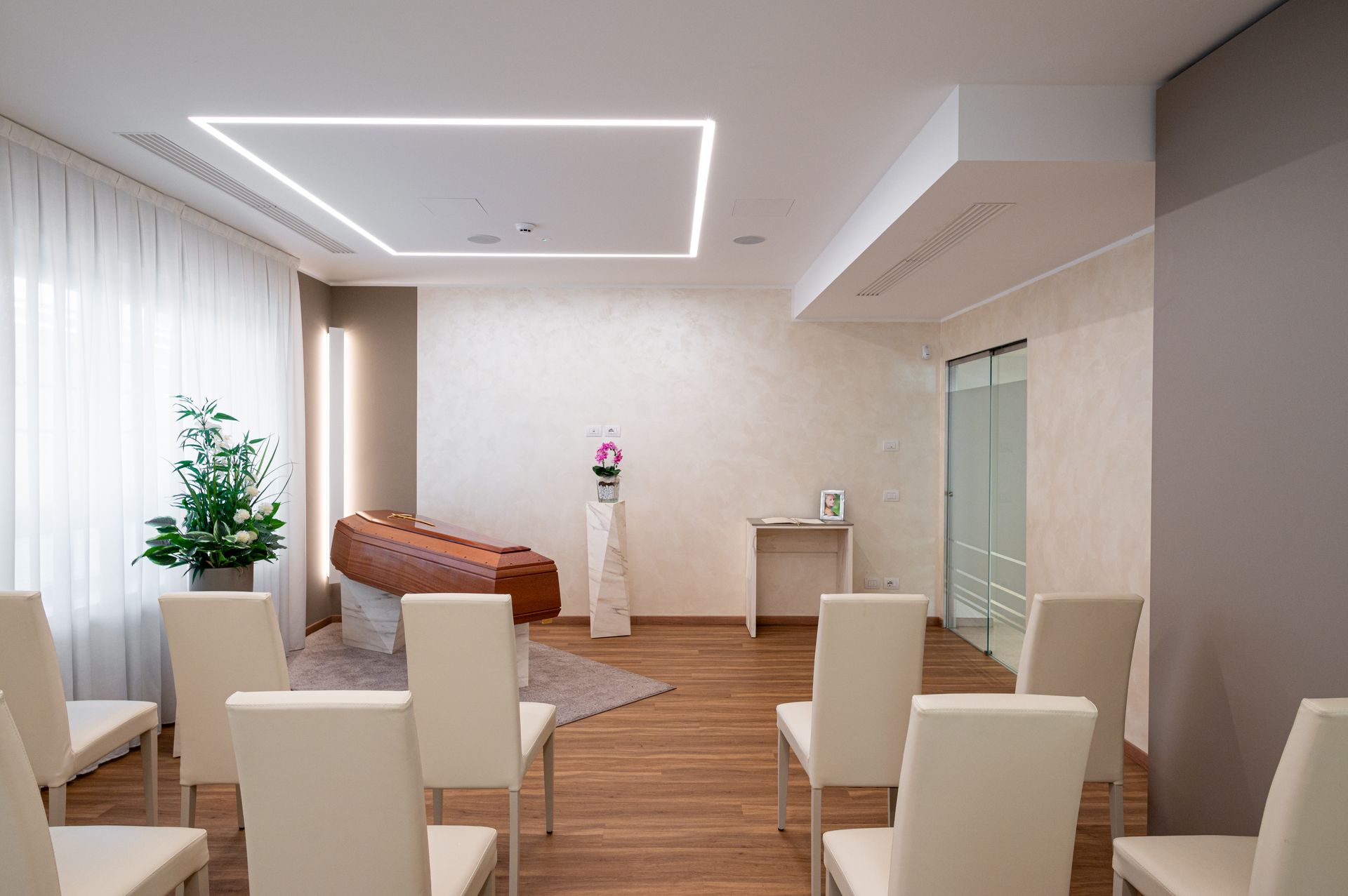 Ciascun locale è estremamente curato in ogni dettaglio. Tanto nelle salette del commiato, quanto nei locali comuni, quali la hall, la caffetteria e gli spazi a verde, la più moderna funzionalità incontra e si sposa con il gusto raffinato degli arredi.